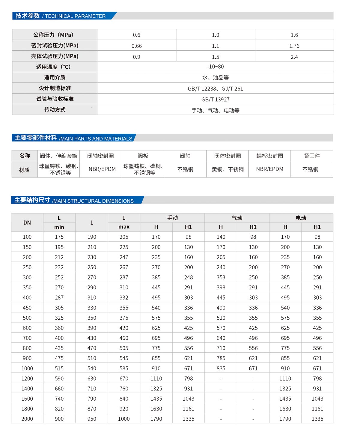 伸縮蝶閥集蝶閥與伸縮器于一體,主要用于給排水及電力、礦山等管道,既有蝶閥的使用功能,又具備伸縮器的功能,便于管道安裝與檢修,且對管道有一定的保護作用,根據(jù)不同工況要求,伸縮蝶閥可采用硬密封及軟密封兩種形式。