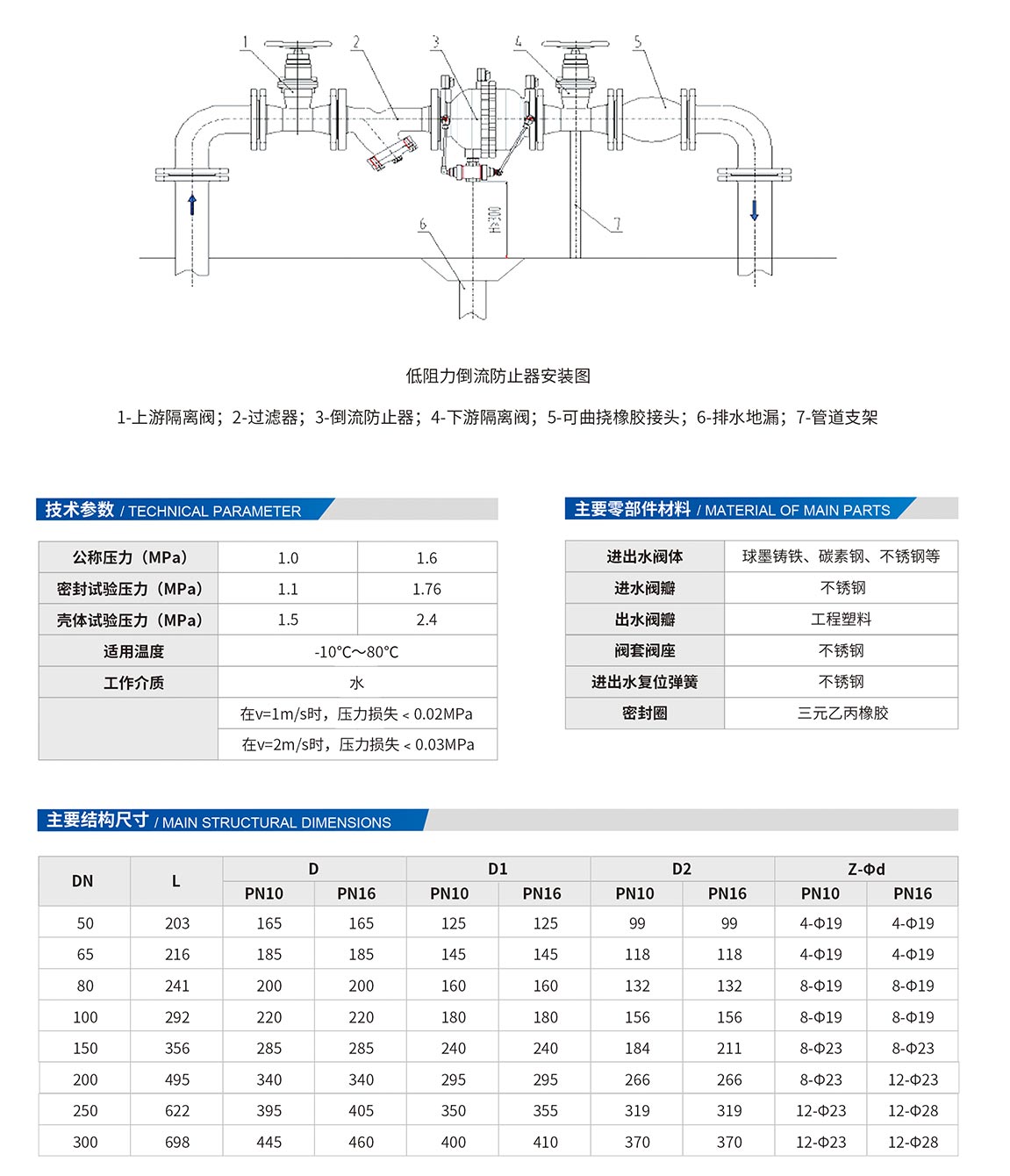 4、水損小,在回流工況下,中間腔始終與大氣相通,且在管中平均流速為2m/s時(shí)的壓力(水頭)損失小于0.04MPa。