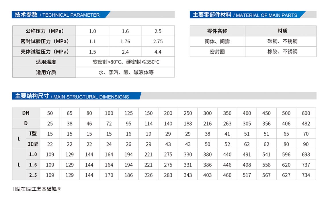 4、流道通暢、流體阻力小,閥瓣在很小的壓差下就能完全打開。